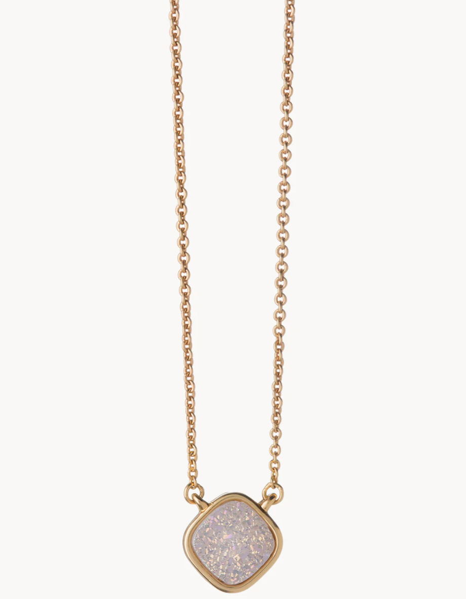 Like sugary, sparkling rock candy, our glittering array of crystalized druzy pendants rock the jewelry scene like no other. Each stone is the natural result of minerals and crystals forming on rock surfaces. And druzy stones are thought to have healing properties that encourage your spirit. Wear this as a reminder that in one breath, you can create your own calm. Block out all drama and focus on the simple pleasures of life. Just breathe.